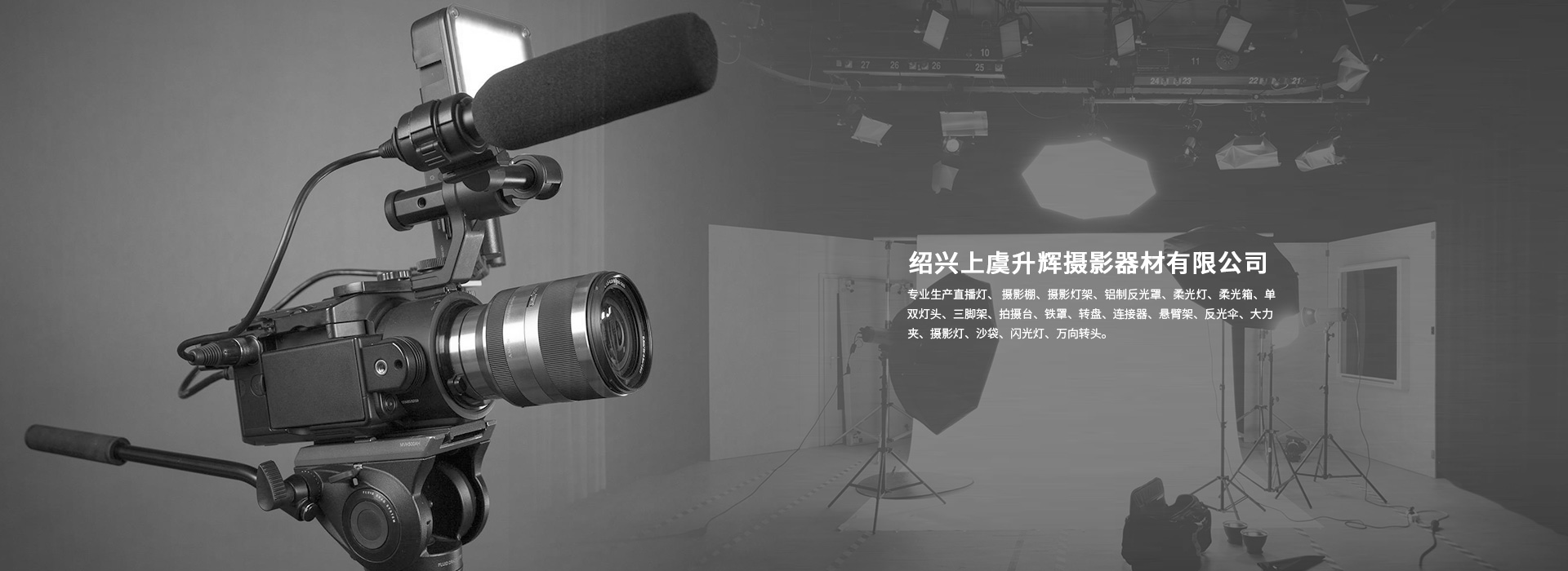 紹興上虞升輝攝影器材有限公司專業(yè)生產(chǎn)直播燈、 攝影棚、攝影燈架、鋁制反光罩、柔光燈、柔光箱、單雙燈頭、三腳架、拍攝臺、鐵罩、轉(zhuǎn)盤、連接器、懸臂架、反光傘、大力夾、攝影燈、沙袋、閃光燈、萬向轉(zhuǎn)頭。